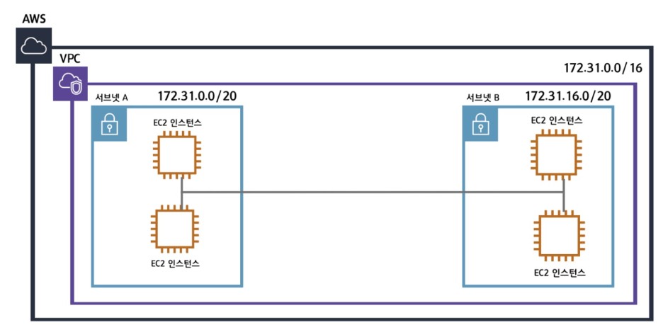 - VPC의 IP 주소 범위입니다. 지정된 서브넷으로 AWS 리소스를 시작할 수 있습니다.