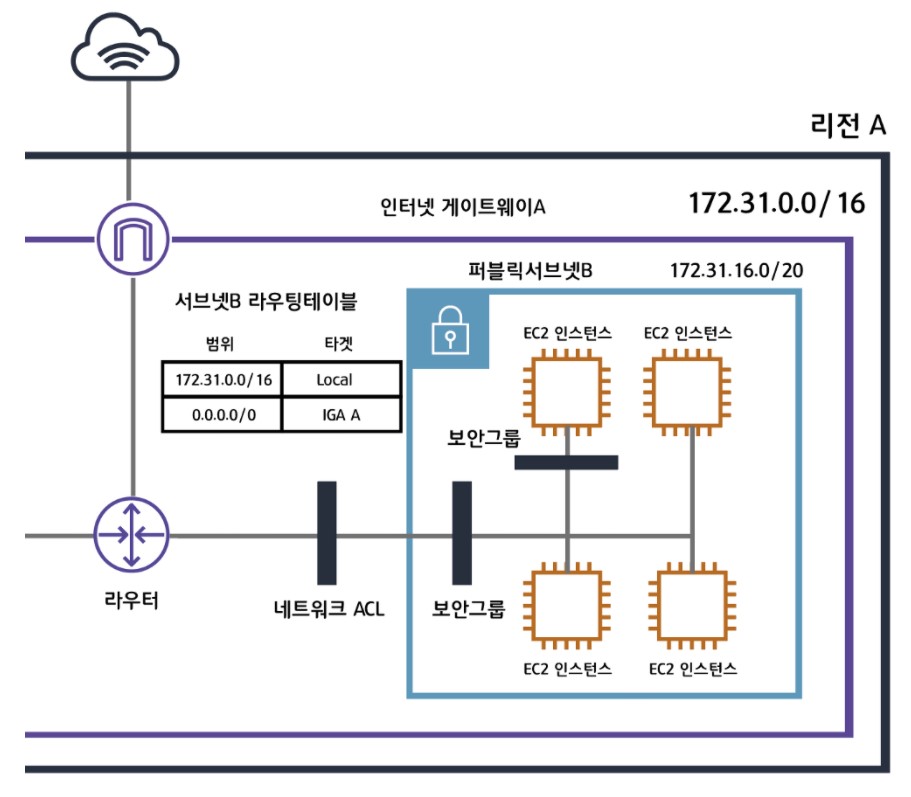 - 각 서브넷의 AWS리소스를 보호하기 위해 보안 그룹 및 네트워크 액세스 제어 목록(ACL)을 비롯한 여러 보안 계층을 사용할 수 있습니다.