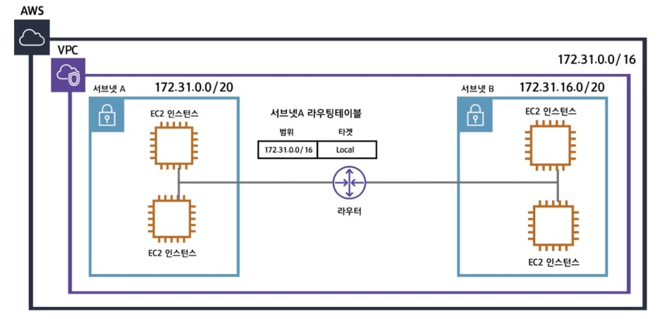- 라우팅 테이블에는 VPC의 네트워크 트래픽을 전달할 위치를 결정하는 데 사용되는 라우팅이라는 규칙 집합이 포함되어 있습니다.
