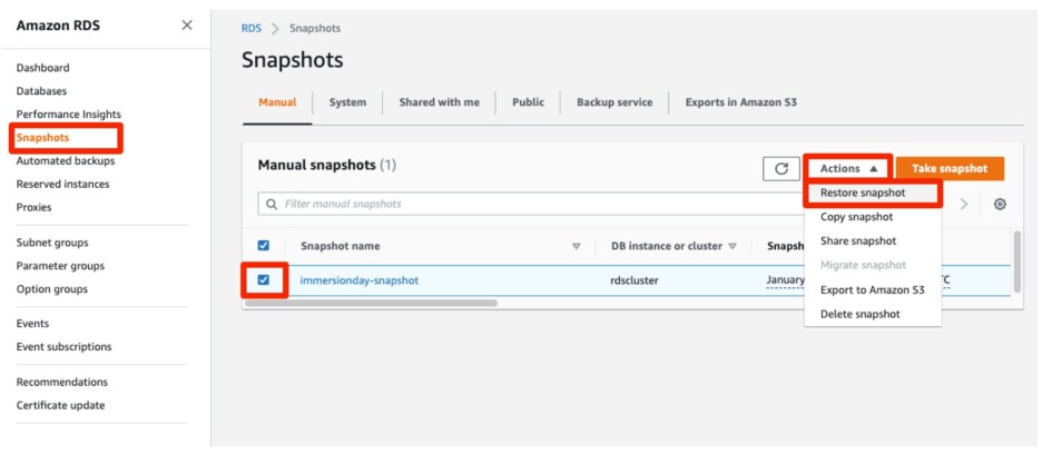 - Aurora에서 유지되는 백업 데이터에서 또는 이전에 저장한 DB 클러스터 스냅샷에서 새 Aurora DB 클러스터를 생성하여 데이터를 복구할 수 있습니다.