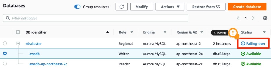 - 장애 조치가 완료되면 RDS 콘솔 UI가 새로운 가용 영역에 반영하는 데 추가적으로 시간이 소요됩니다.