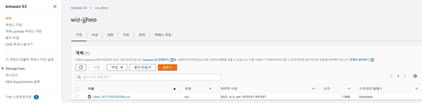 다운 받은 csv 파일을 S3 Bucket에 올려줍니다.