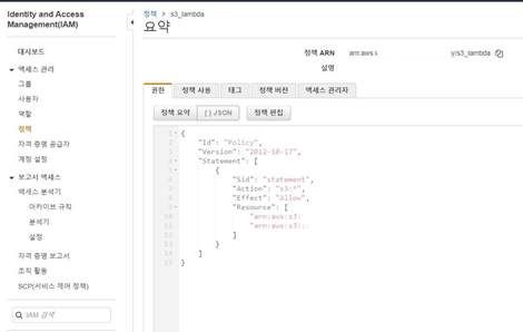 S3의 Bucket에 접근할 수 있도록 하는 정책을 생성해줍니다.