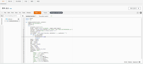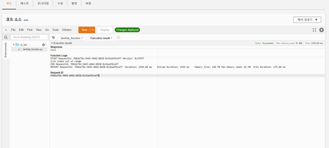 코드를 넣어주고 Deploy로 함수를 저장한 다음 Test로 실행을 해줍니다.