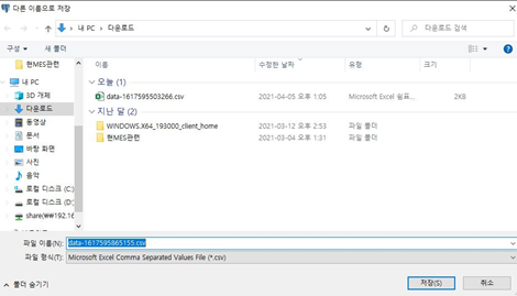 저장되는 csv 파일의 이름은 data-1617595503266.csv 파일입니다.