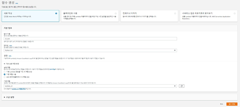 위 생성된 역할을 가지고 Lambda 함수를 만들어 줍니다. 위에서 기존 역할 사용에서 역할을 선택해주면 됩니다.