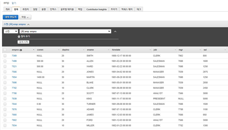 Postgre SQL에서 emp 테이블의 결과 값을 csv 파일로 저장합니다.