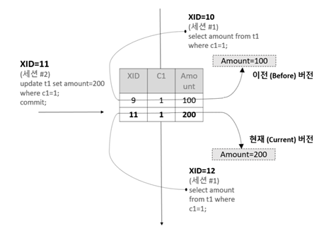 ▪ 특징-2. 레코드 별로 트랜잭션 ID (XID)를 관리한다.