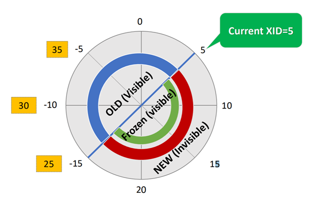 • 즉, 현재 XID 기준으로 절반은 OLD 데이터, 절반은 NEW 데이터이다.