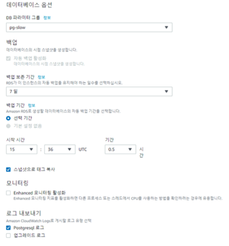 RDS의 데이터베이스 옵션에서 Cloudwatch Logs로 보낼 수 있도록 설정.